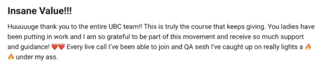 Included in your purchase of UBC, you get access to a 100+ page content vault that you can download to use for your stories or any marketing content! It also gives you the option to customzie the templates if you want to switch up the colours or add your own photos!